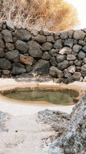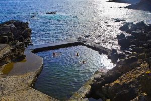 The temperature of the water goes from 39*C to 50*C and the sea fills up pools that have been dug in the lava stones, which balances out the temperature. The pools have different sizes. The smaller ones fit just one person at a time, others are bigger pools for groups to share.